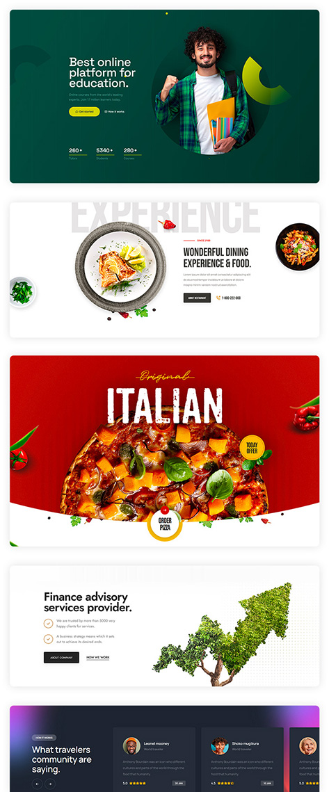 A unique collection of over 1450+ pre-made section that make building a beautiful site easy. Crafto elements brings the latest web trends to your fingertips.